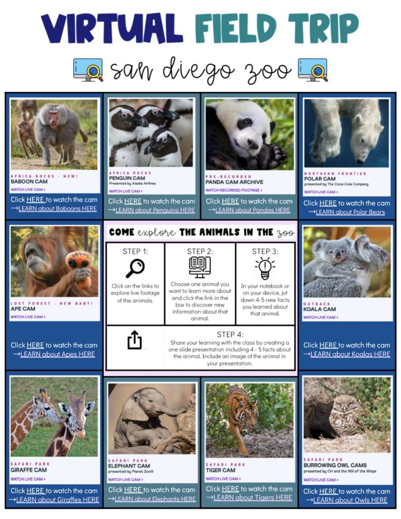 I really love this virtual field trip to the San Diego Zoo hyperdoc. I’m already a huge fan of the Panda Cam from the Smithsonian National Zoo in D.C. and I just think this is a super fun way to let students engage with readily available content that they will enjoy and learn something new. The presentation step at the end is also a great way to turn the students into junior content creators.